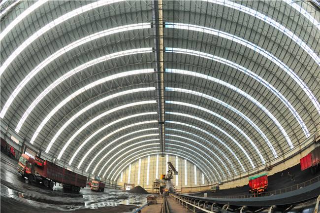 堆场料场封闭式主体结构为新型的钢龙岩网架结构,维修结构为龙岩钢结构龙岩不锈钢板和纤维增强塑料灯具,其外形以龙岩网架式和平板为主,连接柱龙岩施工自由,设置喷雾自动喷水系统,从而可以实现棚内所有物料的覆盖,减少物料在运输过程中的损耗,起到防尘的作用,减少工厂关闭后的二氧化硫排放量,50mg/m3颗粒排放量小于10mg/m3,非常适合低能耗。低闭库自动感应反应对库存轮胎进行清洁,确保轮胎不受道路污染;封闭的储存区可从源头控制粉尘污染,控制无序排放。